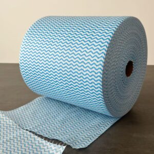 This M-3 type cleanroom wiper is made from a viscose-polyester blend, offering a soft touch with excellent strength. Special sizing treatment significantly reduces lint generation, making it ideal for use in sensitive environments. The fabric is available in plain or mesh patterns to suit different cleaning requirements. Its structure provides high absorbency for water and solvents, while maintaining durability for repeated wiping without tearing.